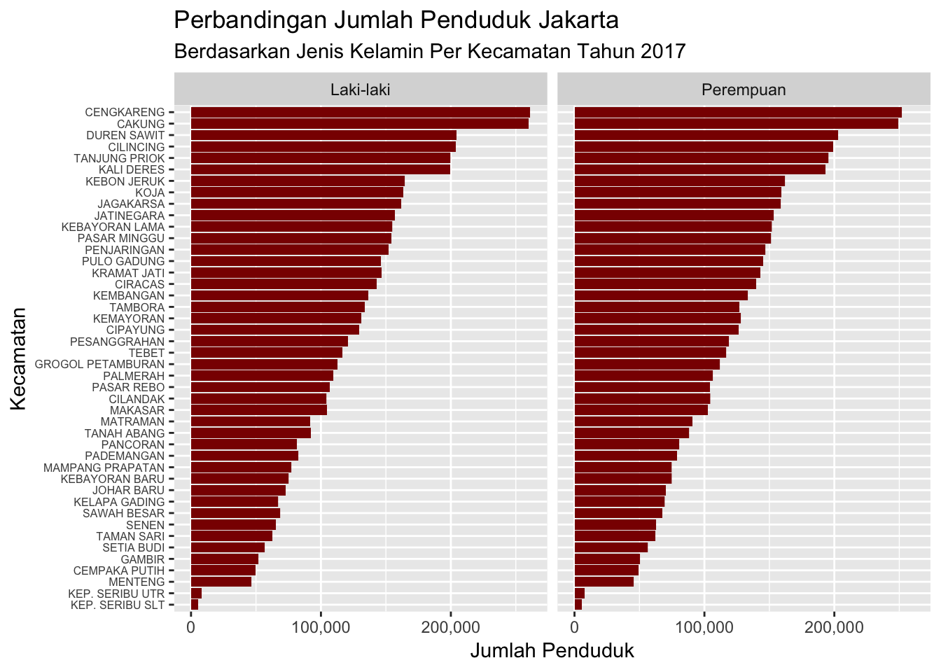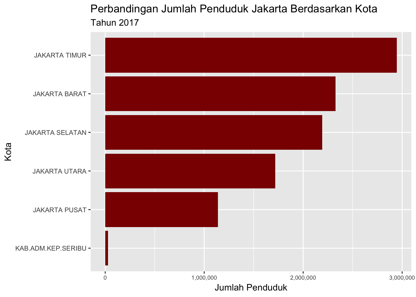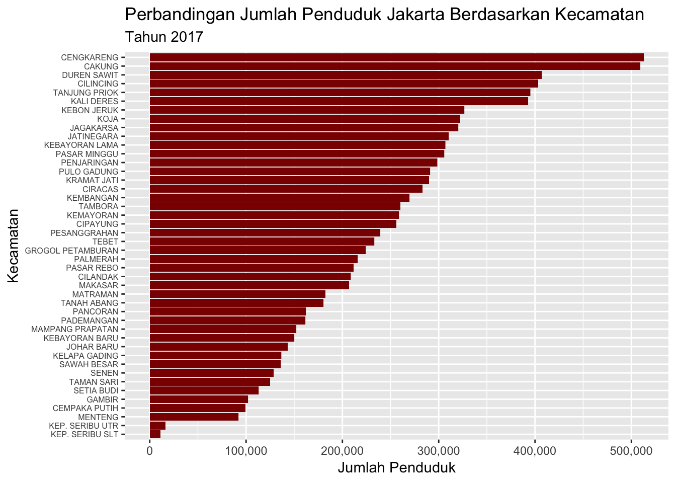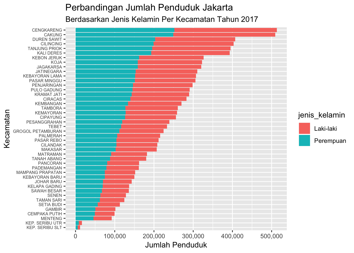 ggtitle("Perbandingan Jumlah Penduduk Jakarta Berdasarkan Kecamatan",